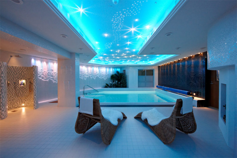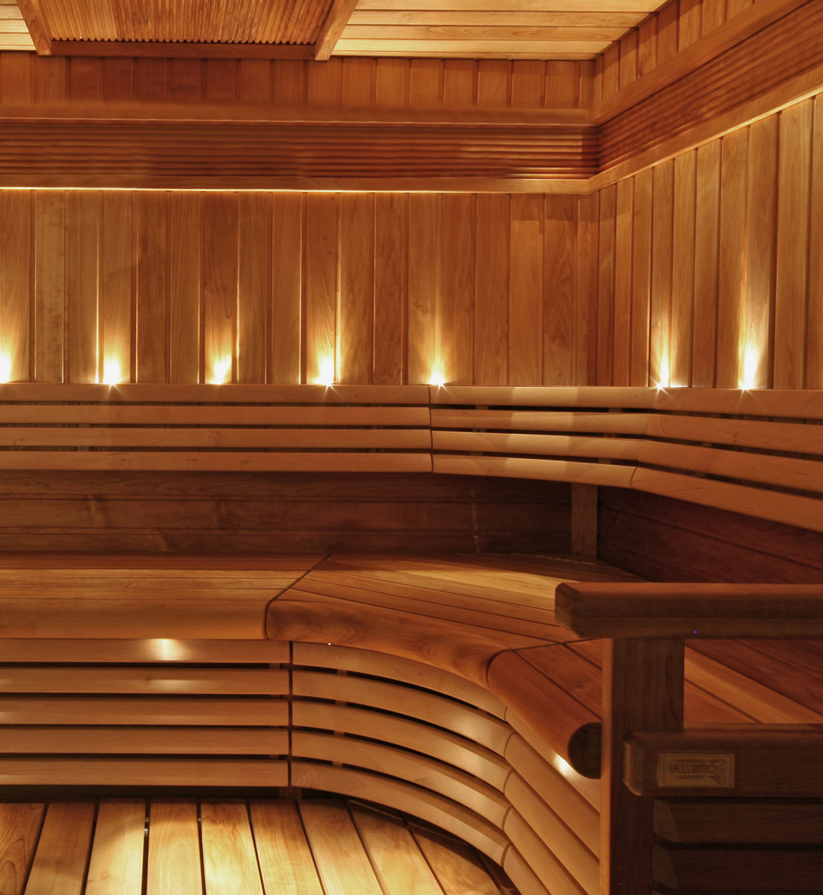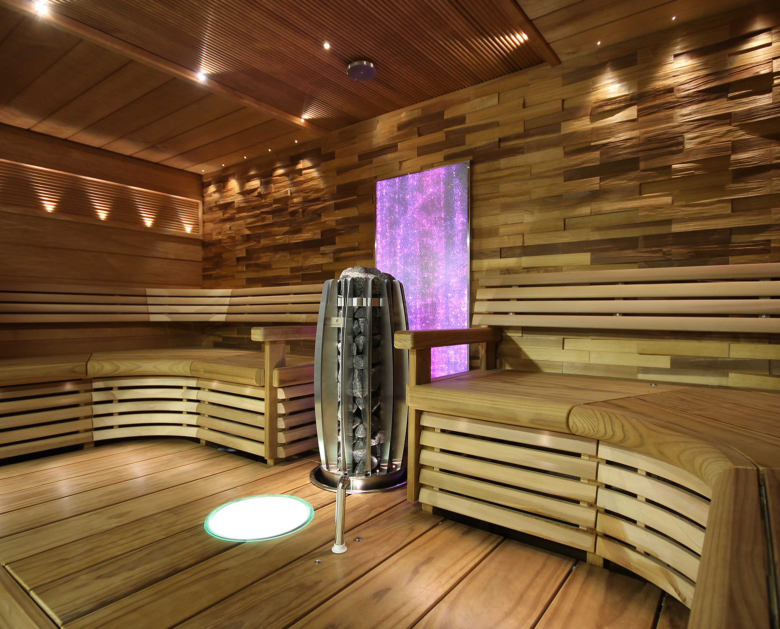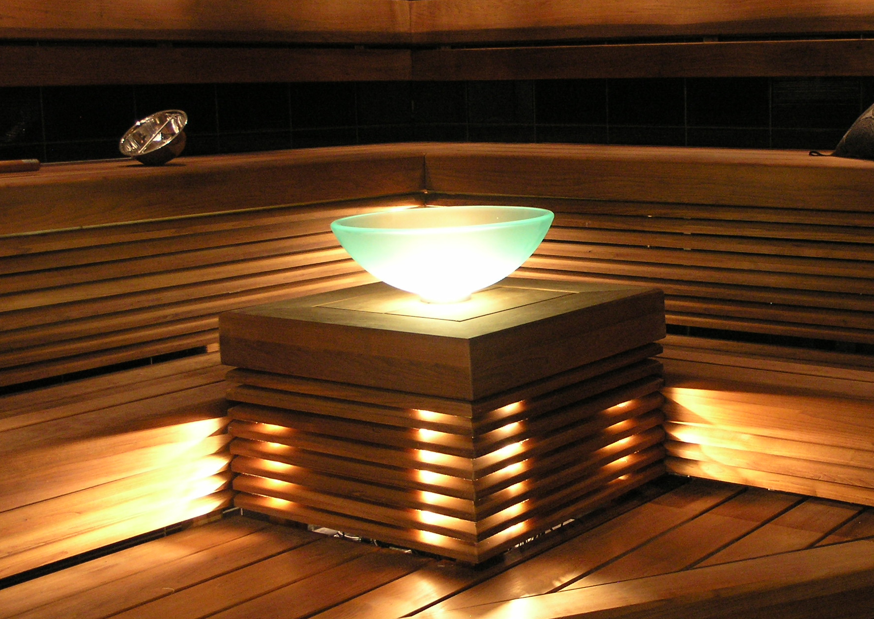 Wirksame Details sind das Geheimnis einer gelungenen Einrichtung – auch in der Sauna. Eine durchdachte Beleuchtung rundet das attraktive Gesamtbild ab. Die Saunabeleuchtung kann zur Akzentuierung der Saunabankformen ebenso verwendet werden wie zur Hervorhebung einzelner Details, etwa einer beleuchteten Aufgusswasserschale, einer in der Glaswand sandgeblasenen Wanddekoration oder eine Glasziegelwand innerhalb der Ziegel. Lichtfaserbeleuchtung lässt sich auch nachträglich leicht einbauen.