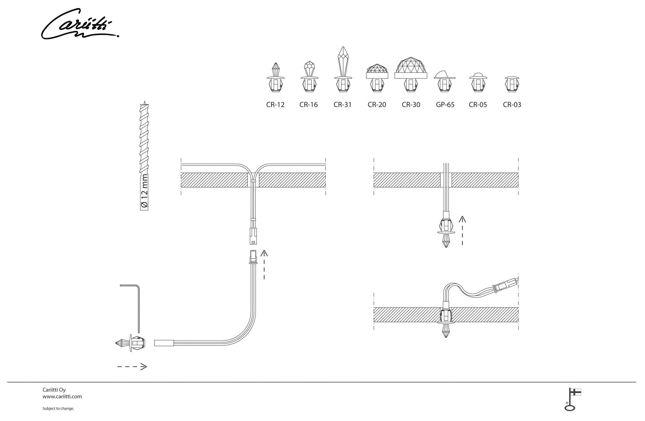 Das montagefertige Set umfasst sechs Beleuchtungskörper des Modells CR-05. Sie sind mit sämtlichen LED-Sets von Cariitti kompatibel.