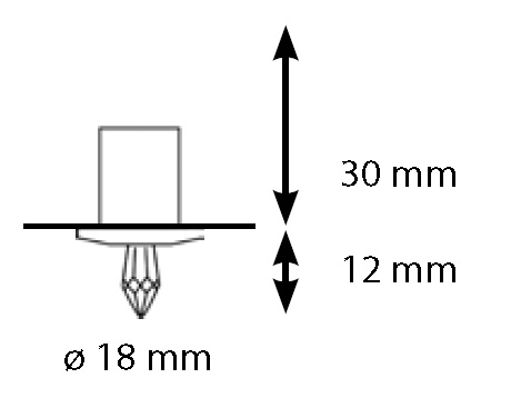 Der CR-12 Zugangsloch-Durchmesser beträgt ø 14 mm, der Außendurchmesser ø 18 mm. Die Länge des Kristallteils beträgt 12 mm. Die Installation erfordert 35-45 mm Freiraum hinter der Decke oder Wandfläche.