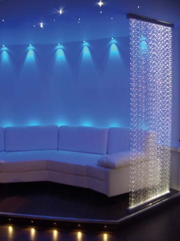 Ein Lichtfaser-Vorhang mit integrierten LED-Projektoren.