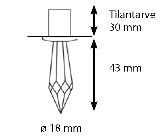 CR-43 access hole diameter is ø 14 mm and the external diameter ø 18 mm. The length of the crystal part is 43 mm. The installation requires 35-45 mm of free space behind the ceiling or wall surface.