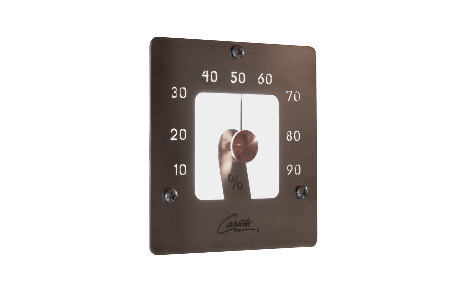 Sauna Hygrometer SQ is made of satin glass and stainless steel.