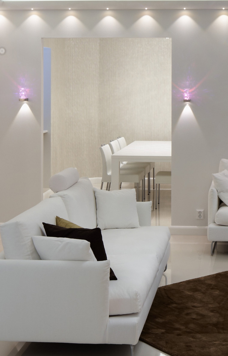 Toive is a modern and decorative crystal light fitting with clear white light. The light reflects through the crystals and creates beautiful and exciting figures on the wall. The colour of the light is warm white.