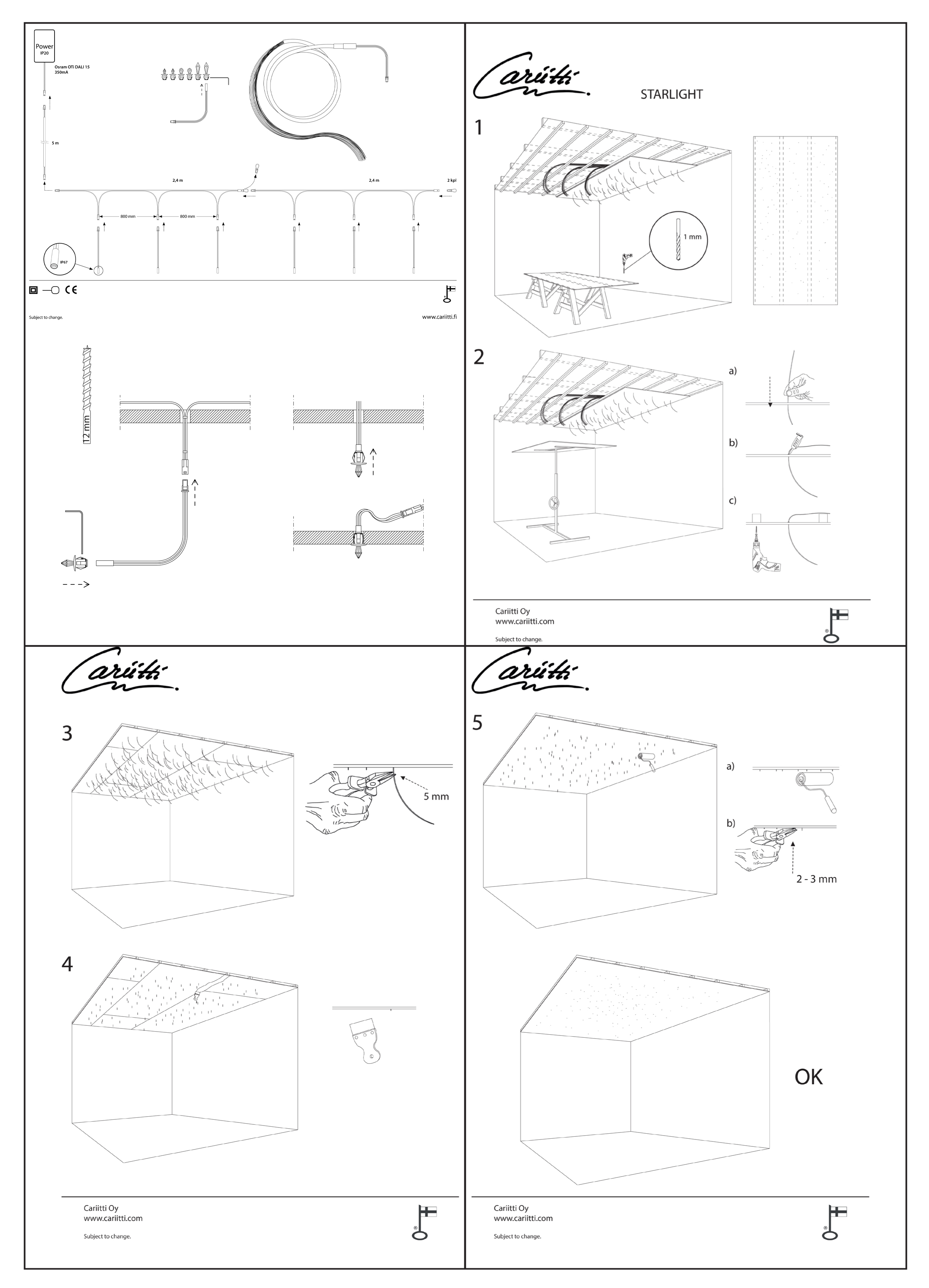 Комплект включает жгут из пластмассового волокна, в котором 75 тонких волокон, 6 хрустальных насадок со светодиодами 4000 К по 1Вт и блок питания.  Рекомендуется на площадь 1-2 м².