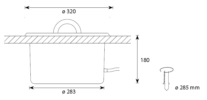 Внешний диаметр шайки 320 мм, диаметр монтажного отверстия 285 мм, высота 180 мм. Материал ледово-зеленый акрил.