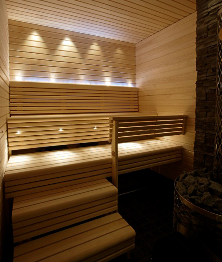 Sarja sisältää saunaan lauteen alle sijoitettavan projektorin (IP65), 23-kuituisen lasikuitunipun sekä kiuaslinssin.